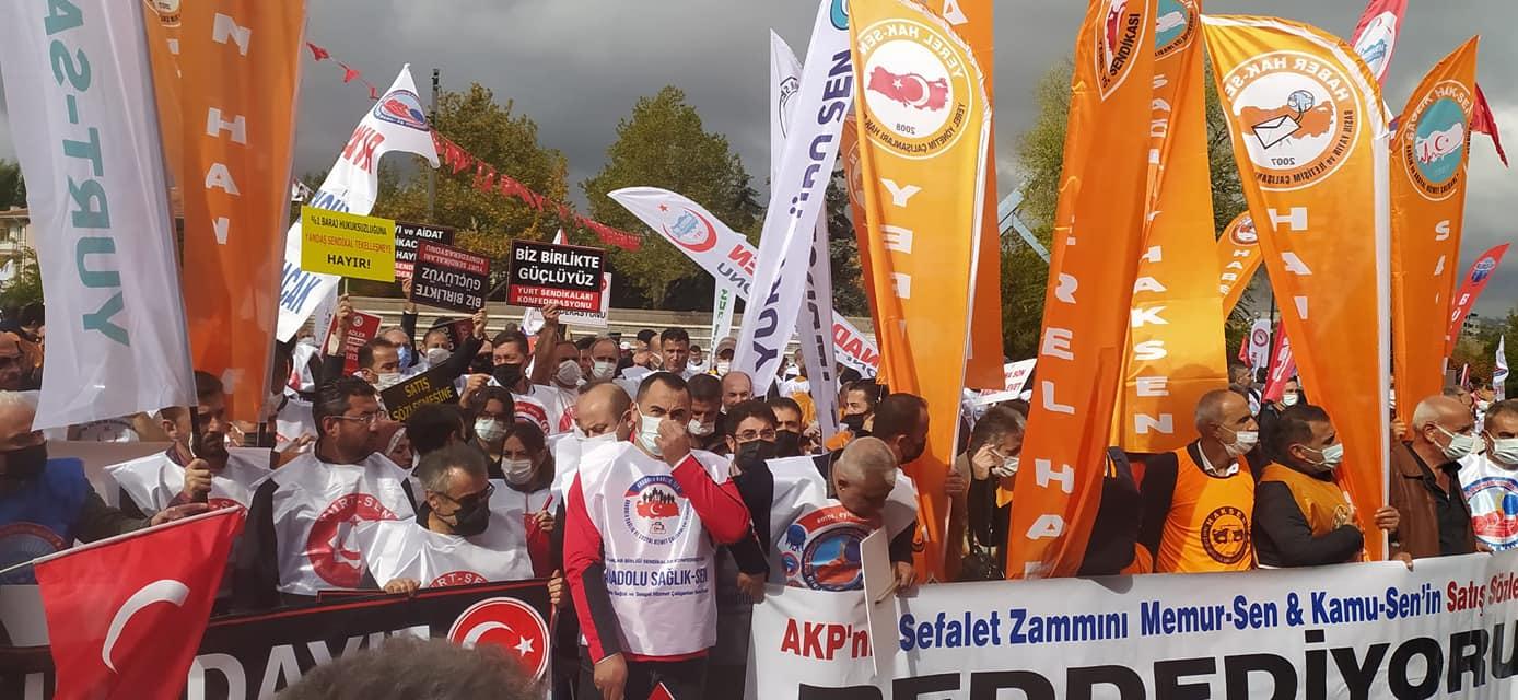 Kamu Konfederasyonları ve sendikaları platformunun Ankara Anıtpark’ta düzenlediği mitingde kamu çalışanları tek yürek, tek ses oldu.